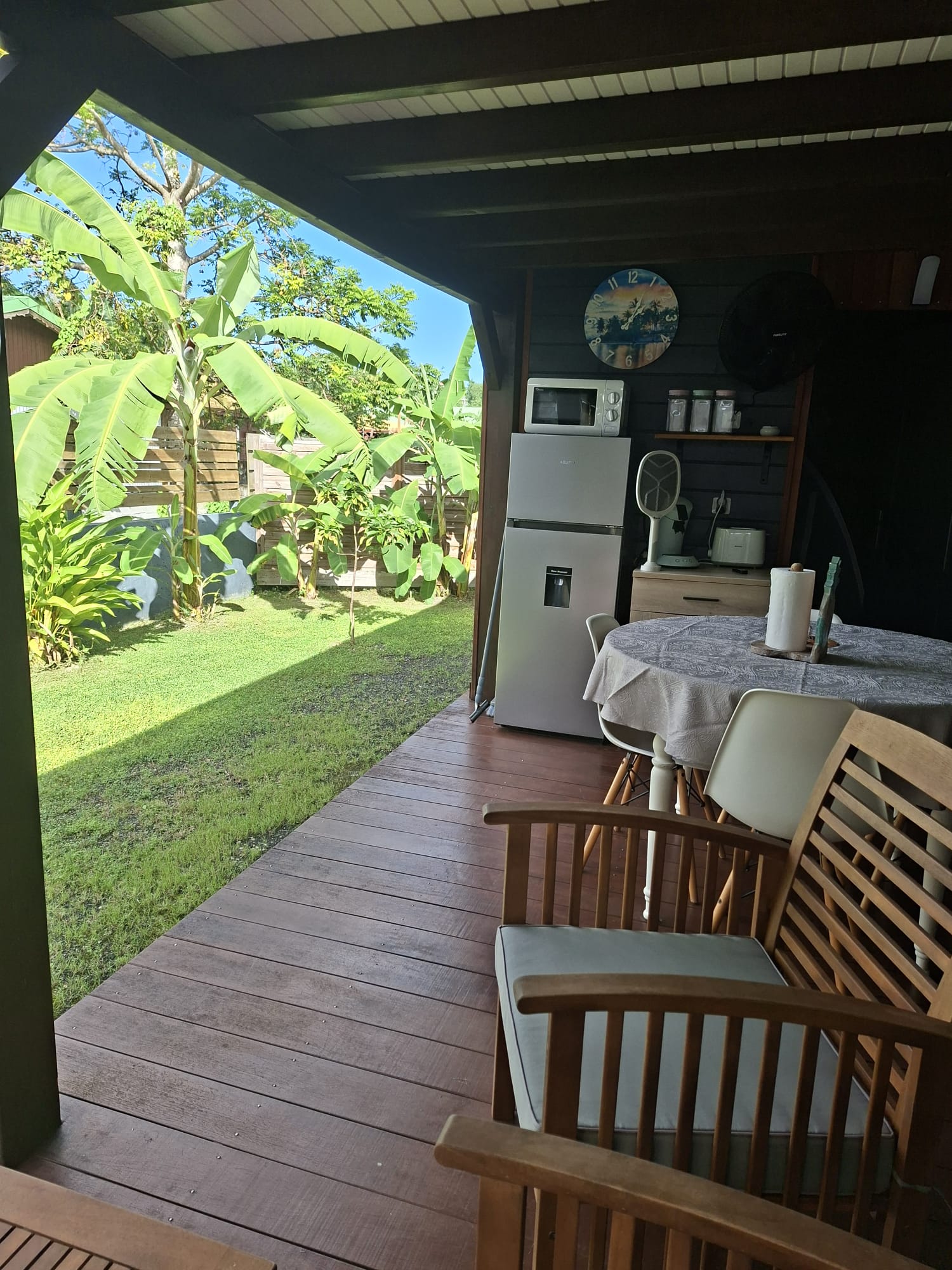 👉 Terrasse en prolongement de la cuisine composé d'un salon de jardin afin de déguster vos cocktail en toute intimité.