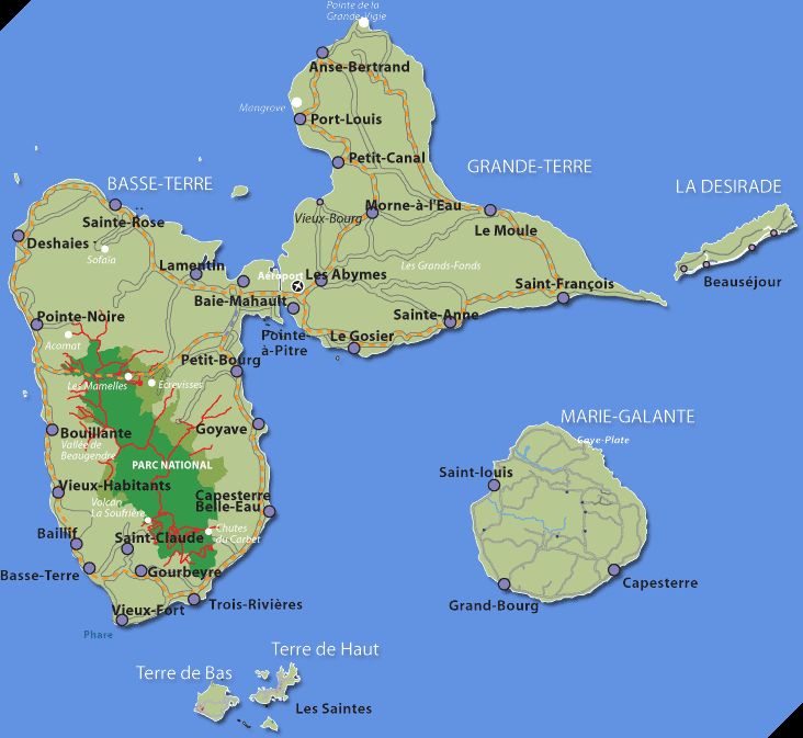 La Guadeloupe, ce n'est pas qu'une île, mais des îles. Il faut également inclure la Désirade, Marie-Galante et les Saintes (Terre-de-Bas et Terre-de-Haut). Chacune de ces îles regorge de points d'intérêts à faire ou voir si vous en avez la possibilité.